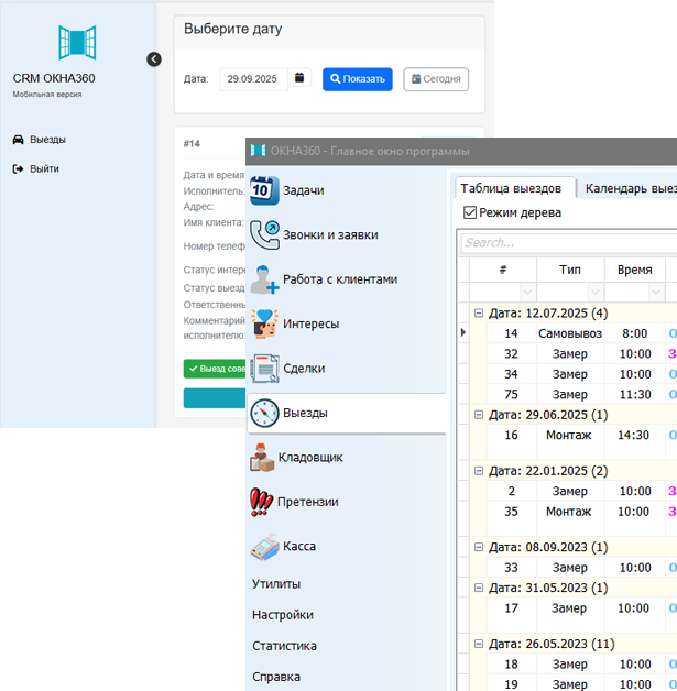 Забудьте о привязке к офису! CRM ОКНА 360 — это единая система, которая идеально адаптирована для работы как на большом экране компьютера, так и на вашем смартфоне.